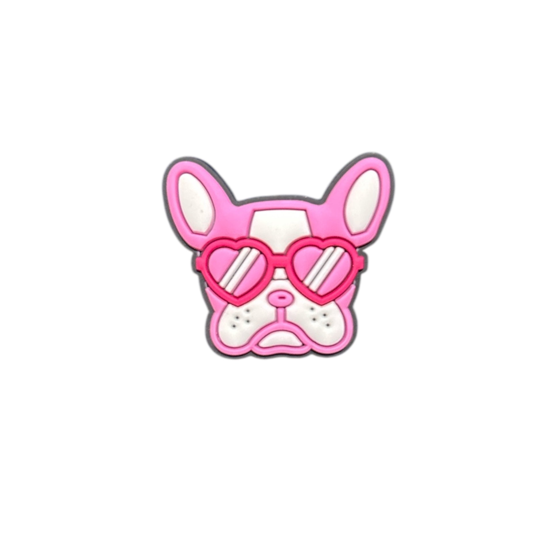 Pink cool pug dog rubber shoe charm easily pops into croc shoe holes. Each charm sold separately